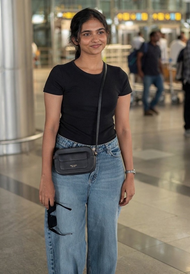Mamitha Baiju Hyderabad Airport look: