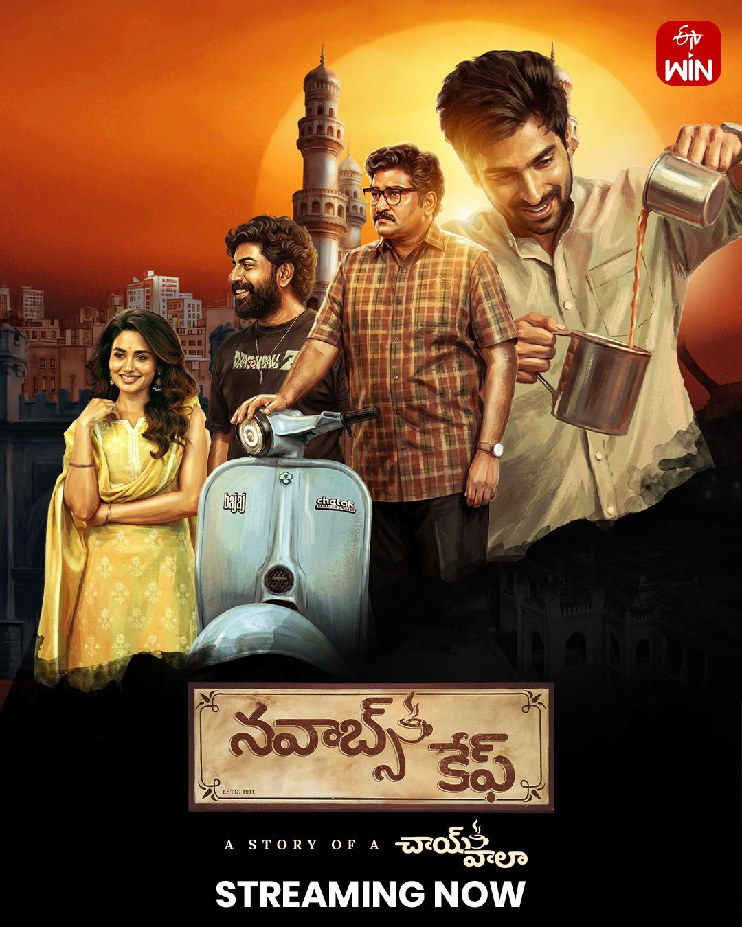 The movie Nawab Cafe, a Telugu film now available on ETV Win, is a heartwarming family drama that explores the emotional significance of family relationships, heritage, and responsibility in a subtle manner. The film, written and directed by Pramod Harsha, is a mix of family recollections, romance, and father-son emotions set against the backdrop of the traditional cafe culture.